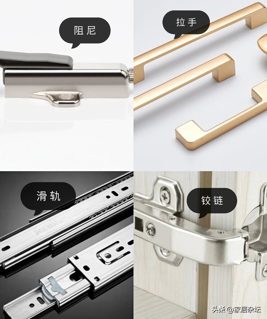 七:五金 定制橱柜,另外一个比较重要的项目就是厨柜的五金。 橱柜五金,是关系到我们橱柜是否好用以及是否耐用的关键。 很多商家可能为了节省成本,就在五金上下升手脚。会选择一些比较廉价的杂牌五金。用不了多长时间就坏了。
