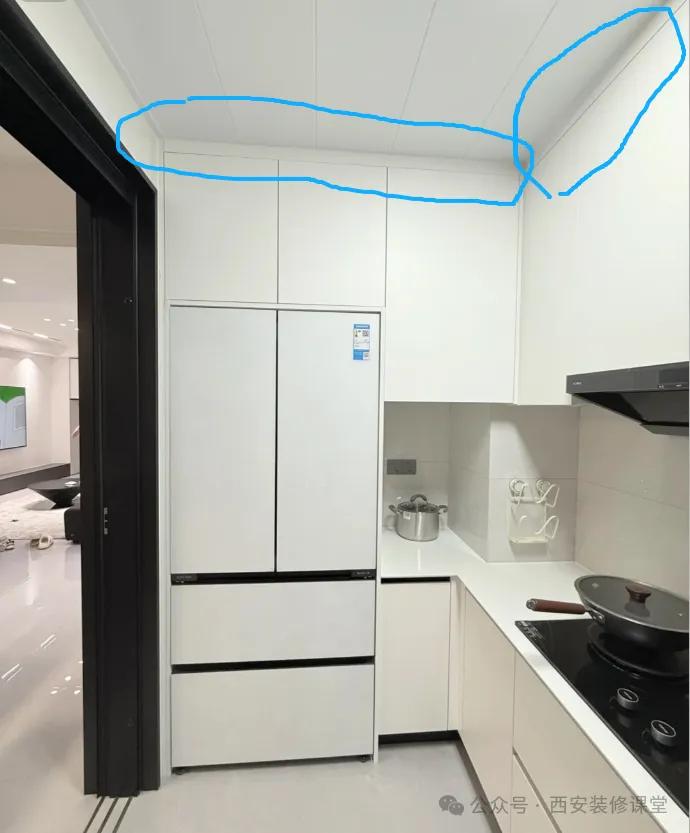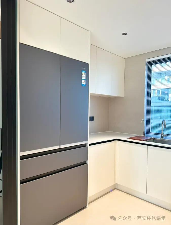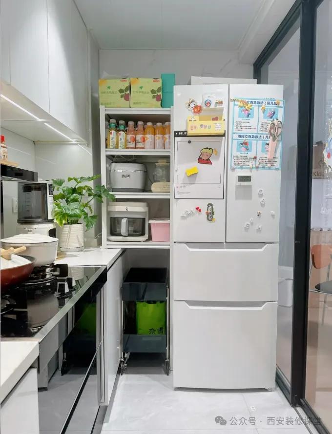 装修前花了一堆堆积建材的冤枉钱,甚至电视墙造型几千不心疼,结果厨房放冰箱不做定制,不仅丑,后期越住越乱