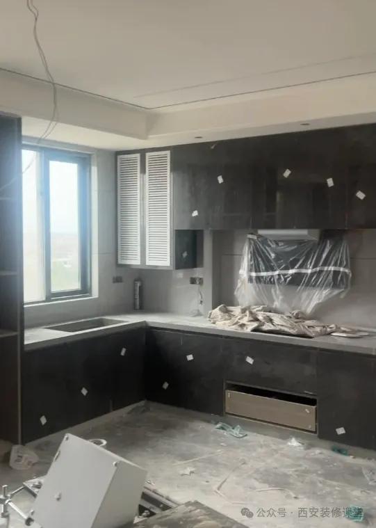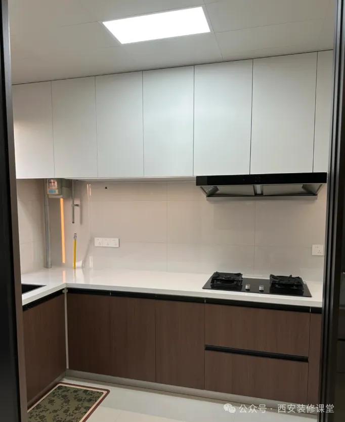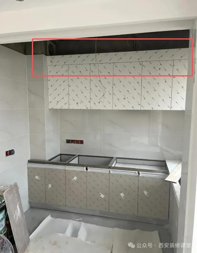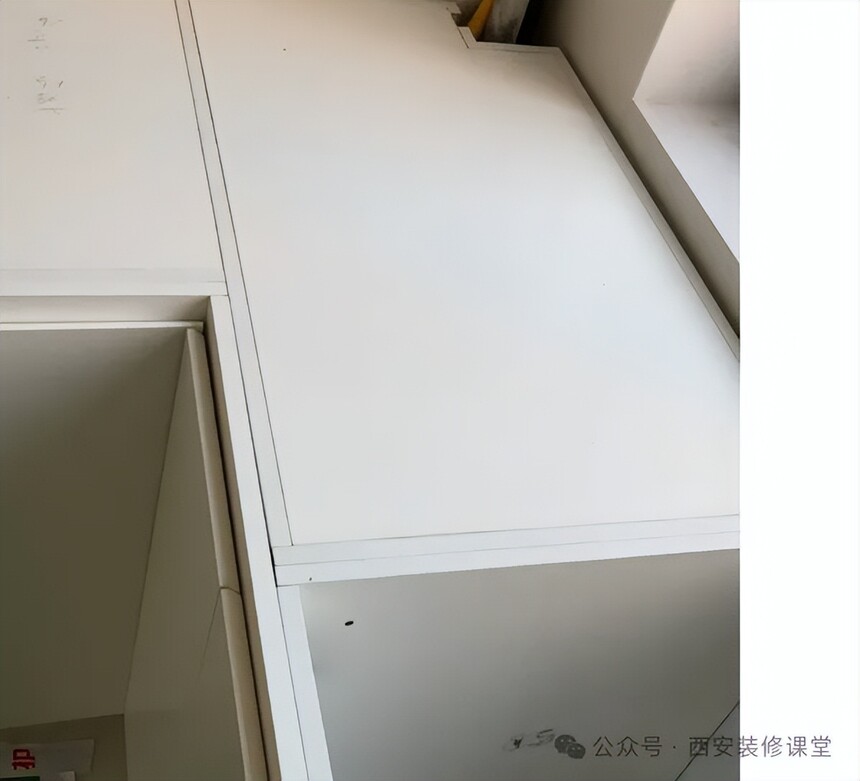用生活经验都能想到,肯定是先吊顶才能安装橱柜恒青工厂,否则如图必须有很宽的板子满足吊顶,不知道是不是为了节省吊柜上方的吊顶钱?这样做一旦配合不好就会露出上方难看的挡板 犯这种错误的基本都是自装,顺序错误,而所有散工都是按照自己方便自己来的,结果是先装橱柜连吊柜高低都不协调,等吊顶做完发现吊柜低了少做了一节,用挡板封住,这个完全就是翻车的做法。 你稍微找一家有良心的装修团队,有一个是团队操作,其他不是团队操作,也会给你说清楚正确顺序,不会犯这种低级的错误。