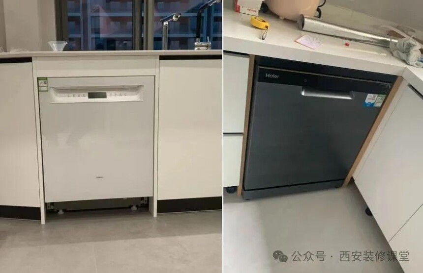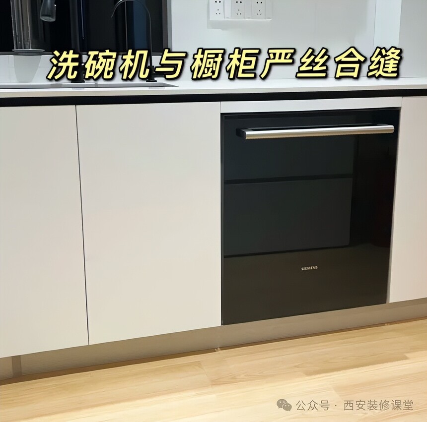 上图虽然不影响使用,但是影响颜值,定制同样价格,别人家100分,这个最多80分,这就是价值所在。旁边是免拉手,给洗碗机安装拉手本身就是多此一举,而且右边为了不影响开柜门加了很宽的固定板恒青木业品牌,太浪费了。《有时候洗碗机不影响使用,但是颜值翻车了》