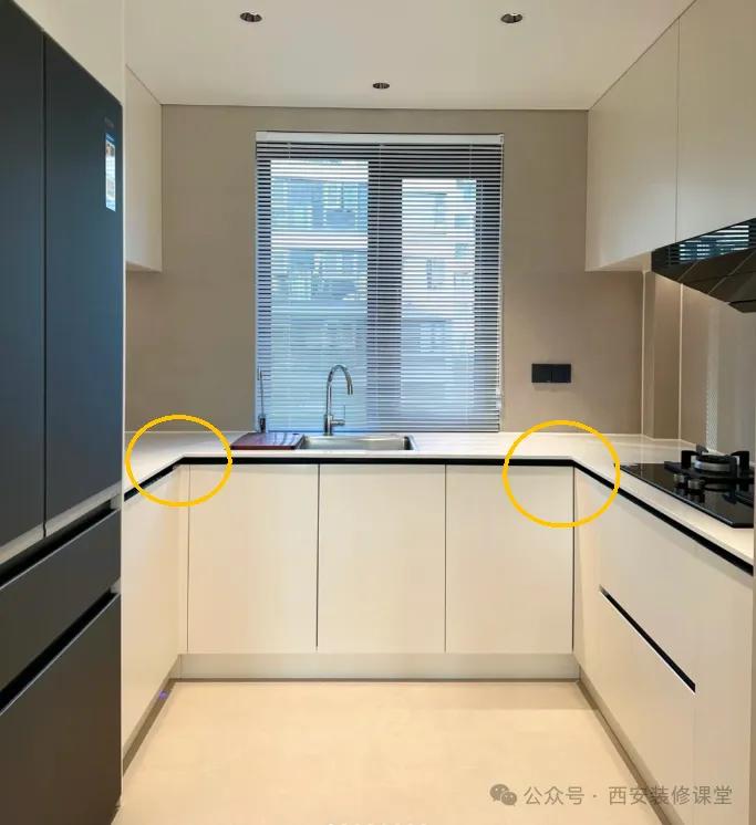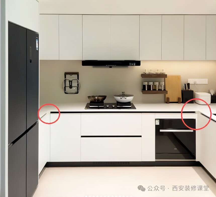 如果你家橱柜只仅限于不影响功能,那定制商完全毫无价值,甚至价格并不低,多看看别人细节设计,这才是定制价值,也是装修价值。 04.橱柜免拉手没有做通