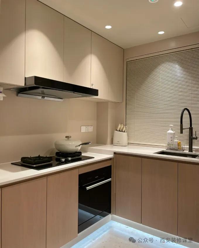 收纳是一个厨房整洁的前提条件,没有一定的收纳,厨房不仅凌乱,而且后期油烟更难打理,会越住越乱,越乱越不想收拾 08.空间小不要做深色橱柜,没有高级感只会翻车
