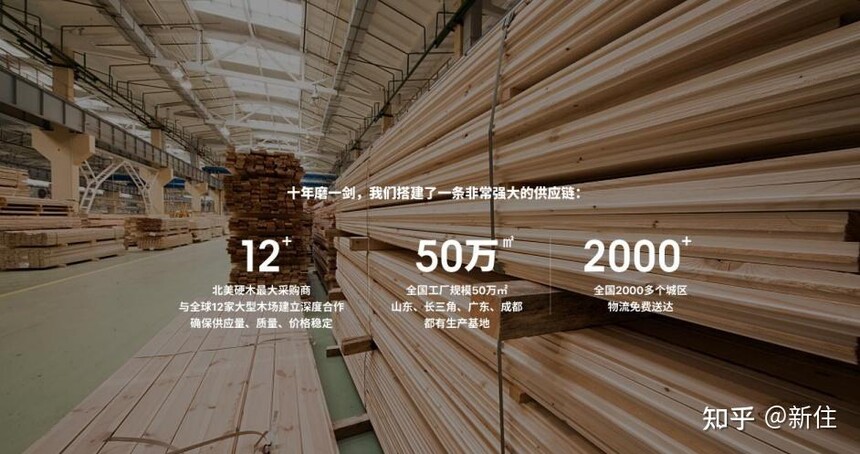 Ps:北美是全球硬木资源最丰富的地区,也是我国黑胡桃木、白橡木、红橡木、白蜡木等硬木主要进口国,其木材供应稳定、质量更好、分级明确、木纹美观等特点。 当然,有了规模之后,可不仅是在原材料采购上成本有优势,设计、生产、仓储、物流、推广……等等方面的成本都会随之降低。