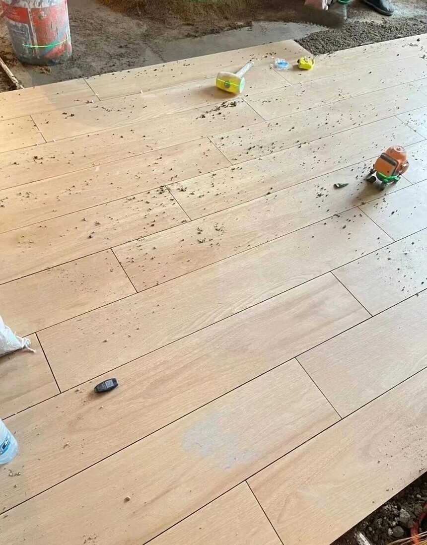 木纹砖最大的问题是他相对一般的砖更容易出现大小头和不平(特别是窄长的木纹砖)。而且窄长的用的片数多,还很容易出现偏差的累积,可能导致的结果就是会有轻微的不平整和缝隙不一致。