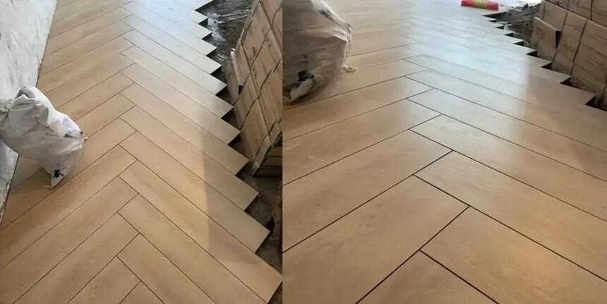 铺贴木纹砖时,师傅的手艺稍微差点就会出现不平整的现象,导致后期清洁上的麻烦不说,还影响到整体的美观性。