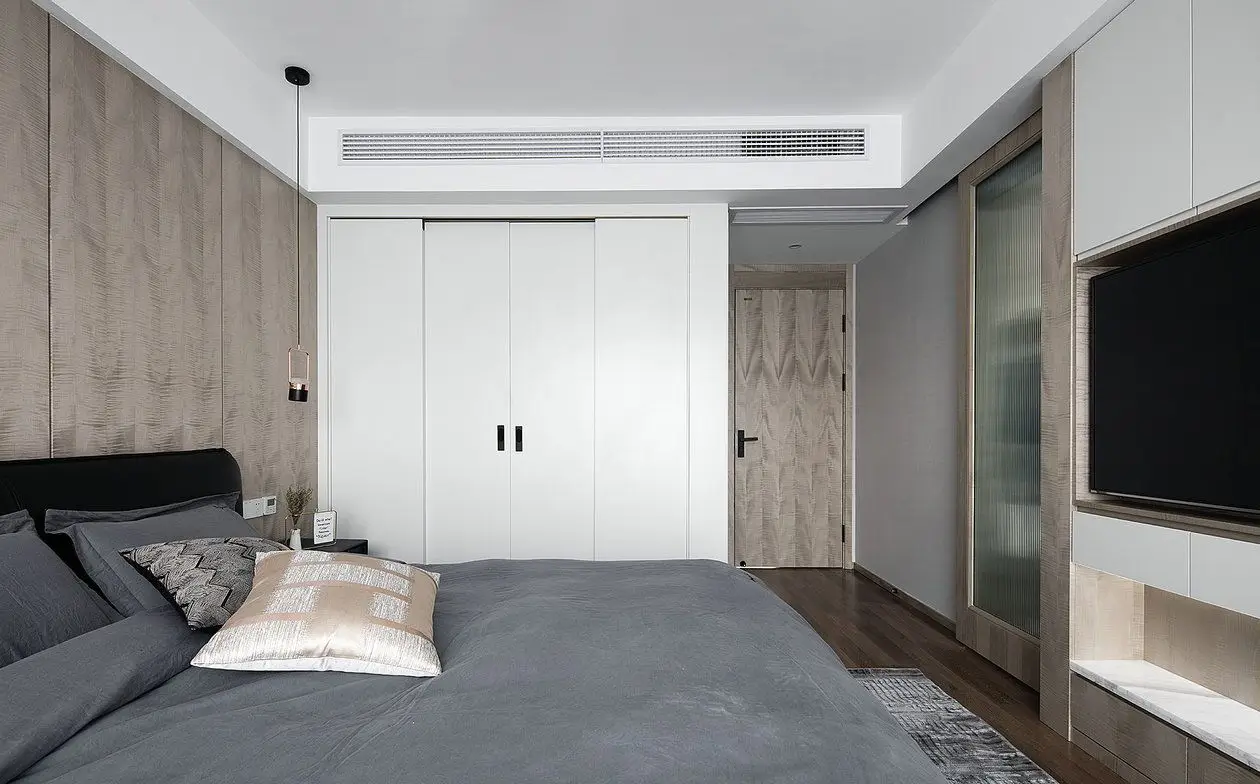 选择与风格相符的床和衣柜能更好地展现出所追求的装修风格。 另外摆放床和衣柜的方式也需要考虑多方面因素。衣柜可以设计在床的一侧,形成平行的状态。