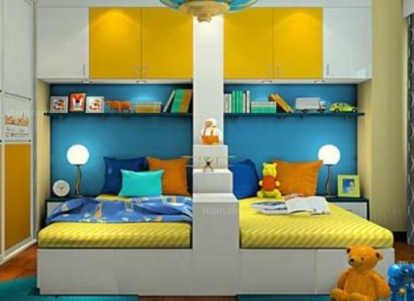 3、隔断设计,对于只能安置在同一房间的一儿一女家庭,那么建议可以利用隔断的设计让孩子能够有一个自己的独立生活空间恒青儿童家具,利用隔断来保护孩子各自的隐私。隔断设计可以是窗帘、墙面、屏风等,根据跟人喜好来选择。