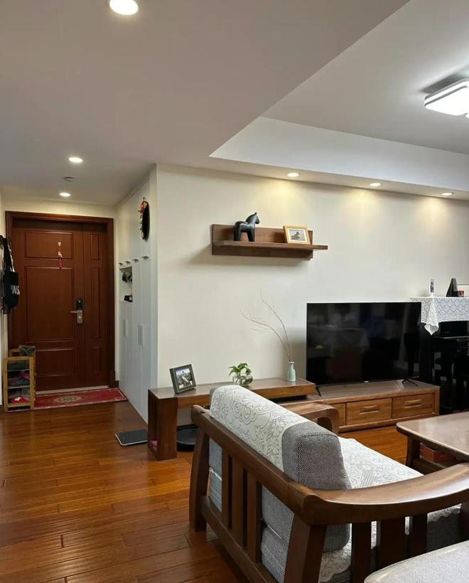 客厅除了必要的物品摆放在明面上之外,没有任何多余的东西摆放,小绿植家用实木简易鞋架,小装饰画足以起到装饰的效果了。这么多年过去了,地板依旧保持如此的干净整洁恒青酚醛板材,可见女主平时很注重地板的清洁和保养家用实木简易鞋架,实木地板脚感好恒青板材材质好,踩上去很舒服。