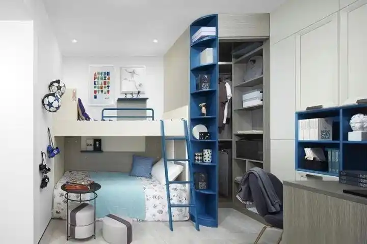 现代时尚深邃蓝设计 最后要介绍的是这款充满现代时尚感的次卧高低床装修效果图。深邃的蓝色书柜与宽敞的书桌紧密相连,既美观又实用。更为贴心的是,还为大宝和小宝精心设计了独立的衣帽间,让他们从小就接触到时尚的熏陶。每天,孩子们都能打扮得漂漂亮亮地出门高低床儿童房装修效果图,让爸爸妈妈们倍感自豪。 广东恒青板材,致力于打造国内环保板材良心品牌。以优品质、高环保、优良的服务为基准,认真做好每一张环保板材,为更多消费者带来绿色、健康。 |